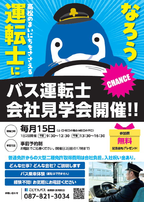 興味を持っていただくことを目的として、毎月15日に ことでんバス本社にて