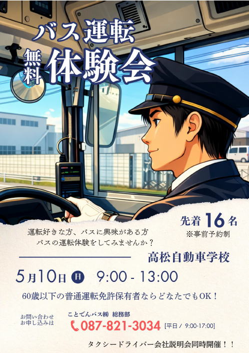 この度、バスまたはタクシーの運転手としての仕事、さらには会社「ことでんバス」