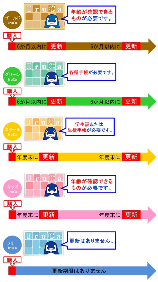 お客様のご都合(資格の変更や加齢)により、ご利用されている各種IruCaの種類を