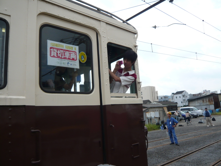 | 平成21年8月21日(金) 東京都より大森学園高等学校鉄道研究部様(総勢22名)に貸切列車をご利用頂きました。貸切車両は120号×500号を使用し、高松築港〜琴電琴平間を記念のヘッドマークを掲出しての運行となりました。仏生山駅では車両工場見学や写真撮影・車掌体験をして頂き、お帰りの際には記念乗車証をプレゼントしました。 |