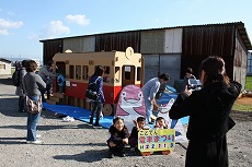 全長2mのダンボールでできた電車で遊ぶことができます。