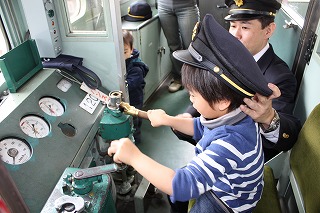 | 本物の車両を使用して制帽を着用して運転士や車掌の体験、写真撮影ができます。 |
