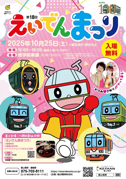 2025年10月25日(土)に、京都市の叡山電鉄修学院車庫で開催される「第18回えいでんまつり」に、出展いたします。コアな鉄道グッズやことちゃんグッズ等の販売をいたします。