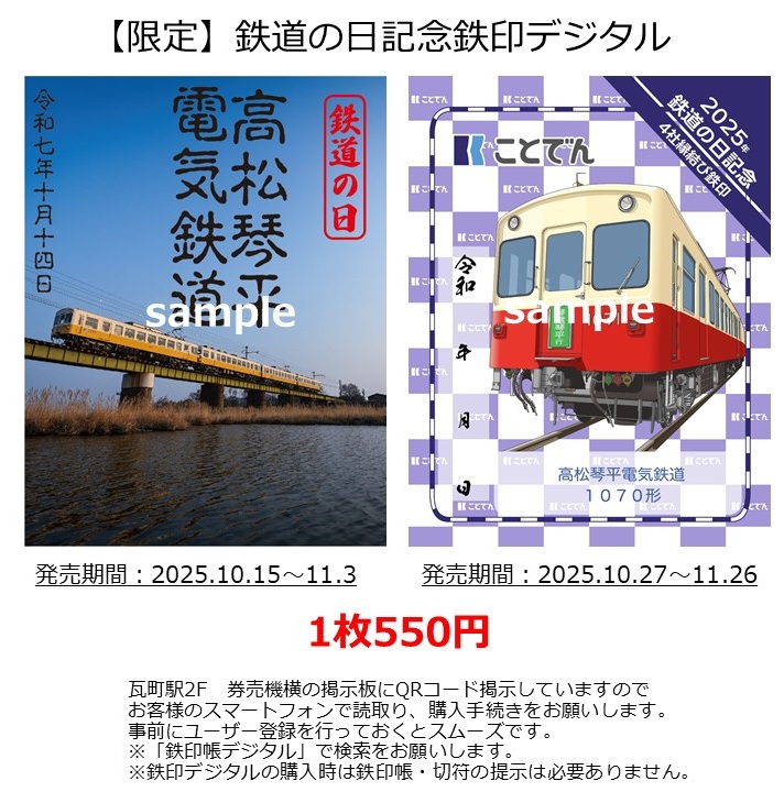 2025年10月1日より、瓦町駅で発売しております鉄印デジタルに限定デザインが登場します。