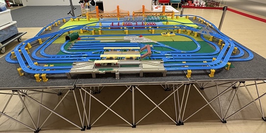 4Fイベントスペースにお気に入りの車両を持ち込んで走らせられるコーナーがありますので、お気に入りにプラレール車両を家から持ってきて遊ぼう!