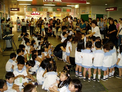 | 琴平駅は 長炭幼稚園・保育園の皆様にお手伝いいただきました |